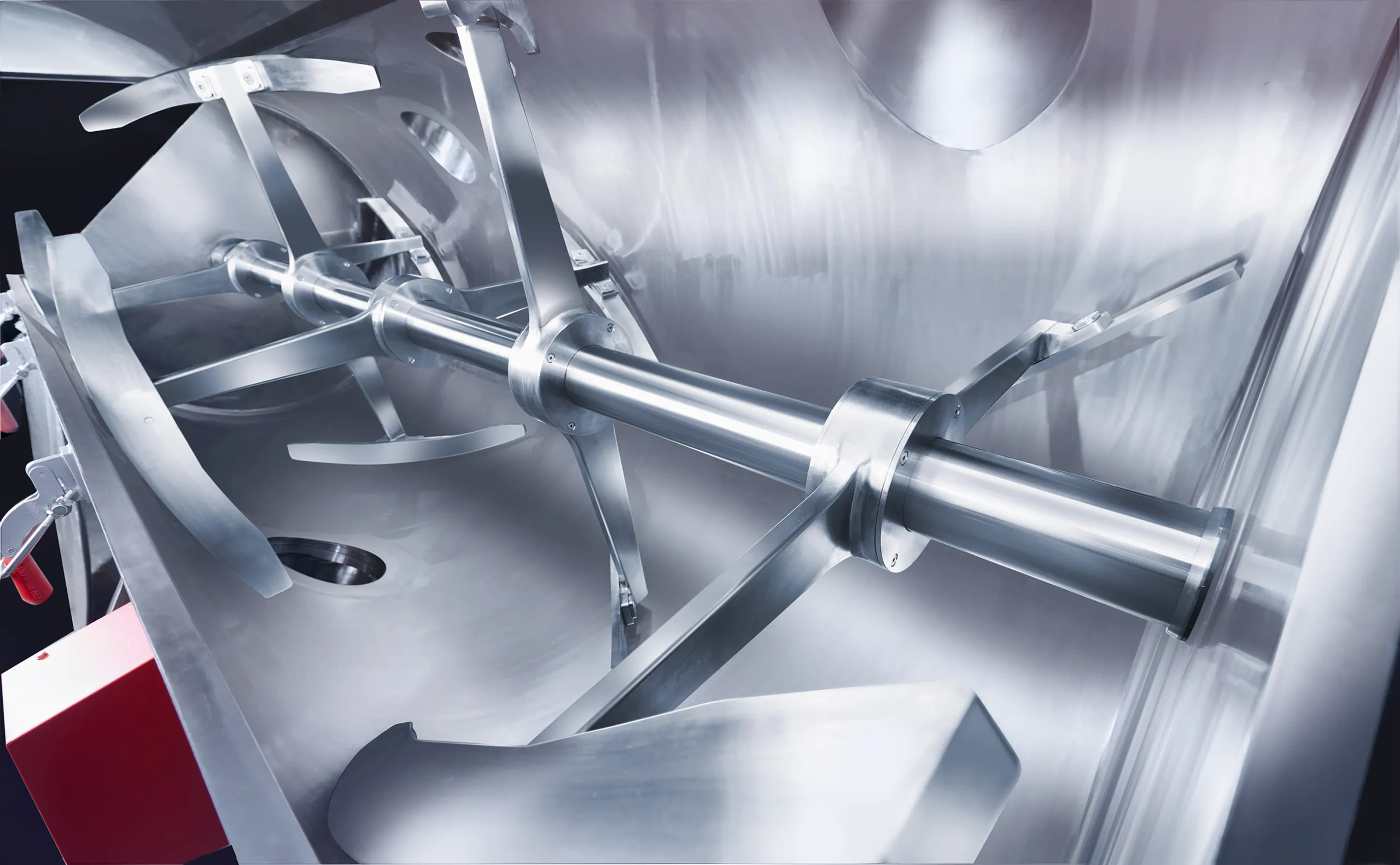 The mixer’s main shaft is supported by dual bearings, ensuring high rotational accuracy.